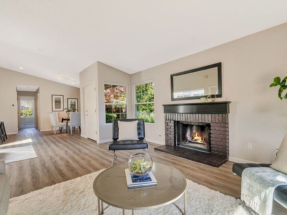 Perfect two-bedroom home on a fabulous corner lot in desirable Sandpiper Cove. Walk to top-rated Amelia Earhart or Bay Farm elementary schools, or to the premier Harbor Bay Club, with aquatics and tennis. Golf and a park are down the street, and gourmet restaurants, unique shops, plus a vintage movie theater, await in Alameda's quaint downtown. An open-plan dining and living room with wood-burning fireplace look out to your gorgeous, fenced backyard with mature plantings and a raised garden bed. Green grass meets an ample patio where outdoor entertaining will be a must. The generous master bedroom boasts an enormous closet and ensuite bath with a custom tub overlooking your sun-filled courtyard (a perfect place for a glass of wine after work or a doggie haven), and the second spacious bedroom would make a beautiful home office looking out to the front garden.