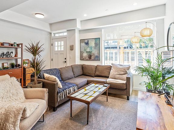 Off the spirit trail in Lower Lonsdale is an amazing 3 bedroom townhouse. This home is unique as it has a studio attached with its own entrance, washer/drier, kitchen and luxurious bathroom. This unit can also be integrated into the main suite with an inside door connecting the two units. Currently it is rented for $1,800 a month. The main unit has elevated ceilings in the living room and large sun-filled windows overlooking the large patio with a BBQ and gas hookup included in the maint. fee. The kitchen is a dream, with gas range, white quartz counter tops, large island that seats 4 and high end integrated fridge and dishwasher. The bedrooms both fit king sized beds and are separated. Included is a parking stall with EV charger and large storage locker.