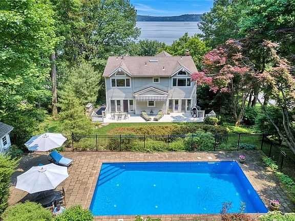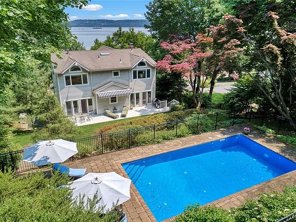 Superb Hudson River views with deeded riverfront access. Large & charming modern home w/new inground pool & new fence (2018) offering privacy to back yard w/mature plantings. Great entry is shaded by lovely river view veranda. First floor features spacious parlor w/stone fplc, 2 large bay windows & custom bookcases w/concealed bar; living room, cozy private study, bedroom & full bath. Dining room has wall of French doors overlooking new rear terrace & new (2018) inground pool with new pool heater (2019). Kitchen has separate breakfast room w/French doors, all new stainless steel appliances, Frigidaire refrigerator, gas range/stove, microwave & dishwasher. Brand new Maytag washer/dryer too. Master ste w/vaulted ceilings soars 20ft. Two-story wall of windows & French doors lead to private balcony overlooking the river & magnolia trees. Master bth has marble floors, high vaulted ceiling, dual sinks, tub & shower. Two add' brs & full bth also on 3rd fl. Close to all Piermont has to offer.