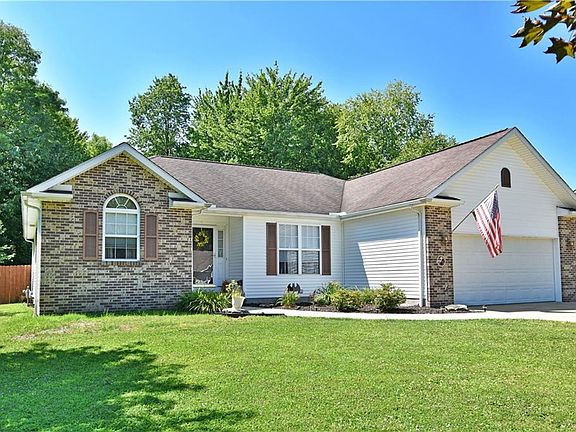 Beautifully kept and perfectly executed, this wonderful Cortland ranch offers up big style with its well -appointed living space and park-like backyard featuring a multi-tier deck with a covered spa area! The handsome residence is quick you draw you near with its wide concreate driveway and tasteful brickwork that accents the front of the home. A sun-filled foyer enjoys tiled flooring as the nearby formal dining room awaits your next meal. An open central layout entails a robust living room with tall ceilings and a gas fireplace at the far wall. Hardwood styled flooring continues into the kitchen with its bar-top seating and long running countertops. A pair of spacious bedrooms can be found along the main hallway, separated by a colorful full bath that takes advantage of the available natural light. Opposite the home, a lavish master bedroom is complete with a unique stepped ceiling, full private bath with whirlpool tub and walk-in closet. Below, a finished basement delights with an entertainment friendly bar and plenty of rec space. First floor laundry is an added bonus.
