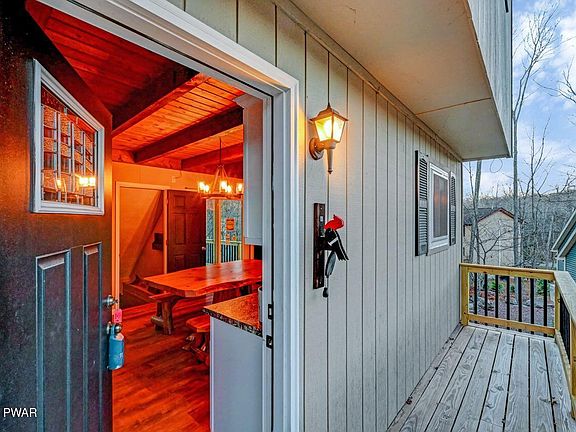 Nestled on a level lot with serene views of the golf course, this beautifully updated home is located in The Hideout, a premier four-season, amenity-filled community in the Northern Poconos. Featuring brand-new front and rear decks, a paved driveway, and a private balcony off the upper-level bedroom overlooking the golf course, this property is perfect for relaxing and entertaining.Step inside to discover a stunning new eat-in kitchen, new laminate flooring throughout, and brand-new windows and sliders that flood the home with natural light. The living room boasts soaring ceilings and a cozy brick fireplace with a new propane insert, creating an inviting atmosphere. The main level includes a bedroom and a full bathroom for added convenience.Upstairs, two bedrooms are connected by a bathroom featuring a luxurious jetted tub. One bedroom includes a private balcony, perfect for morning coffee or evening stargazing. The finished walk-out lower level offers a spacious recreation room, a versatile space for family and friends, and a combination full bathroom and laundry room.Enjoy the privacy of this golf course setting while being part of an amenity-rich community with lakes, pools, tennis courts, ski hill, and more. This home is a perfect blend of modern updates and timeless charm!