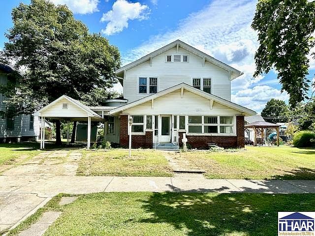 This gorgeous, stately home is nestled into the heart of Sullivan, & it is bursting with character & beautiful details that will steal your heart the minute you walk in. There are original hardwood floors throughout most of the home, the DR has an inlay design in the floor, the office has a striking floor to ceiling, huge window that lets the natural light flood in, there are built-ins all over, glass door knobs, original tile floor in the bathroom, beautiful woodwork in the foyer & staircase area, beams across the ceiling, an ornate fireplace, a rounded cove in the LR, & the beams, built-ins & molding work in the DR are stunning. Everywhere you look, you will find craftsmanship that you just don't see anymore. There are 4 large bedrooms & 1 full bathroom upstairs with a large walk-in closet in the hallway for extra storage. The enclosed front porch has really neat original windows that tilt out, & it will be a perfect spot to sit and enjoy the seasons all year around. Central HVAC only about 5 years old. If you have been looking for a home with tons of space & character, then this is the one!