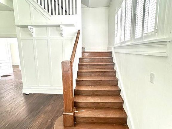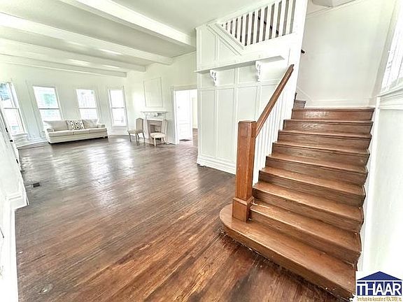 Ornate fireplaceRounded coveEnclosed front porchBeams across the ceilingBeautiful woodworkLarge walk-in closetOriginal hardwood floors