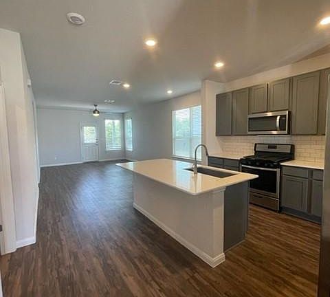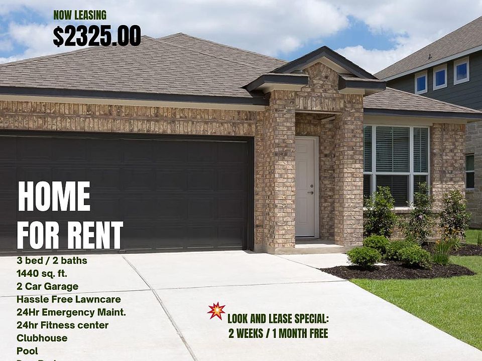 ONE MONTH FREE! Beautiful 3 bedroom 2 bath single story home, includes stainless steal appliances (Fridge, dishwasher, microwave and gas stove). Our community offers an onsite fitness facility available 24/7, refreshing pool to relax in, pet park and more! We have access to the San Gabriel River paths to ride your bike or take your morning run. Come visit us today! Resident pay all utilities, pest control fee $12 and hassle free lawn care $75 additional per month. We are a rental home community with lots of amenities to offer our residents!