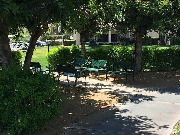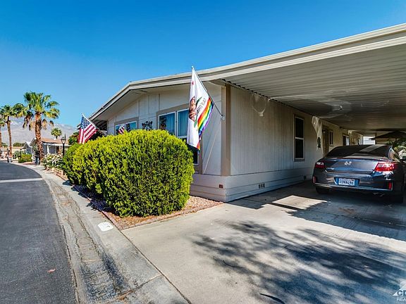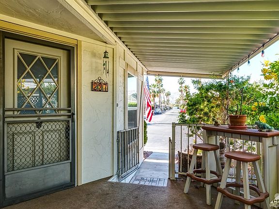 Beautifully redone floors and new dual pane windows throughout. Home is partially furnished-ask for inventory list. Beautiful views of the Santa Rosa mountains from living room. New garbage disposal. Master bedroom and guest bedroom both have direct access to their own bathroom. The A/C has just been serviced with two pre-paid future visits for regular maintenance. Home also has an evaporative cooler. The home was releveled and all supports checked 4 years ago. Newer ceiling fans in living room, dining room and kitchen. New Hans Groehe faucets installed in the bathrooms. Tremendous pride of ownership shows here!