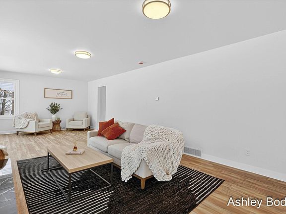 Completely remodeled and move-in ready, this beautifully updated 3-bedroom, 1-full-bath home sits on over an acre in desirable Comstock Park, within the sought-after Kenowa Hills School District. The open floor plan offers a bright, inviting flow with new luxury vinyl plank flooring throughout the main living areas and hardwood floors in all bedrooms.