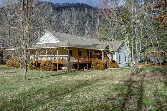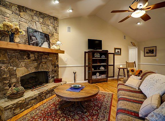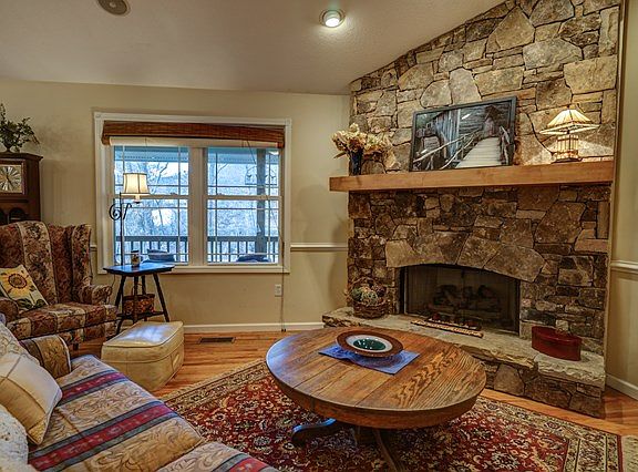 Scenic, riverfront, easy access, main level living and Jackson county location make this a rare combination of beauty and practicality. Stone fireplace, beautiful wood floors throughout, custom kitchen cabinets, awesome shower & tub in master bath. Well maintained, fenced yard, wraparound porch, attached garage. This one checks all the boxes!!!