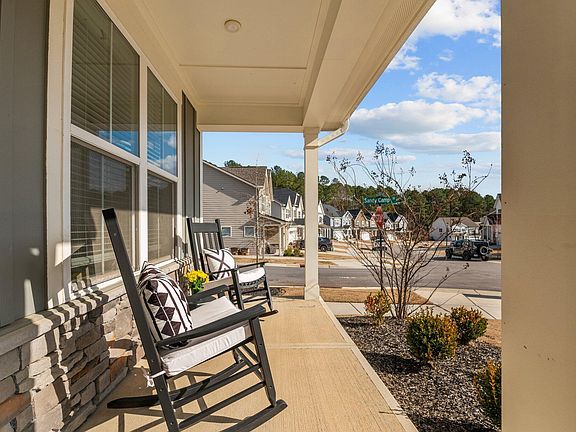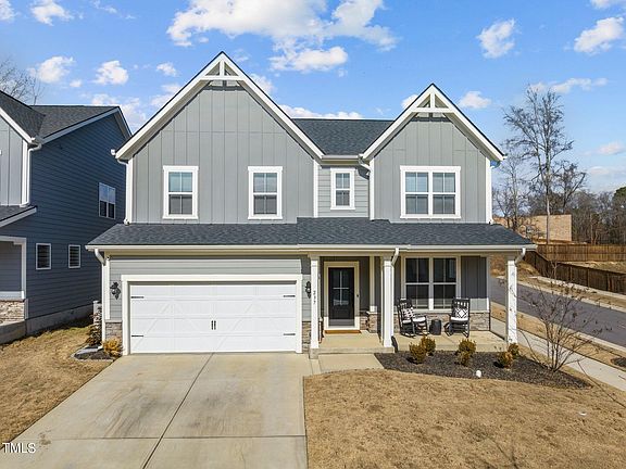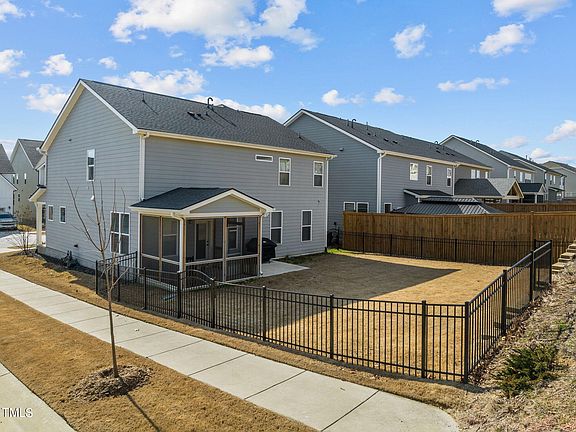 Better than new! Built in 2021, this Bridgeport (in Heritage) home offers numerous custom upgrades. LVP wood floors throughout, except bedrooms, including stairs and bonus room. Enjoy cooking in the Gourmet Kitchen, featuring a large island with custom pendant lights, walk in pantry, wall oven/micro combo, stainless steel appliances, gas cooktop, cabinet vent hood, custom backsplash and quartz countertops. Entertain in the open floorplan which flows to the screened porch and flat, fenced yard. On the main floor you will find an office (French doors) AND guest room. On 2nd floor, find two spacious guest rooms with large closets and shared bath, open bonus room and primary suite, boasting tray ceiling, custom tiled shower, his and her vanities and roomy walk in closet. Other finishes include wood blinds throughout, black hardware, including new matching plumbing fixtures and towel bars/tp holders, custom lighting, drop zone/mud room, exterior security cameras, and electric car charging outlet. Energy Efficient. Bridgeport neighborhood is centrally located near desirable Heritage Schools, Smith Creek Greenway, new restaurants/Publix/shopping/coffee, the Factory Sports Complex, Heritage Golf Club, and parks and recreation areas, while just minutes from downtown Wake Forest, 401 and 540 highways. Community amenities include dog park, playground, park, pool and trails.
