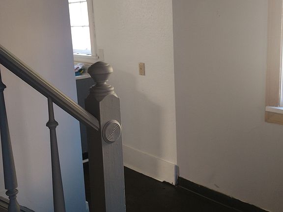 This house has been freshly repainted, hardwood floors exposed and painted and repairs made, including installing a shower. Large 2 bedroom house with detached garage and workshop in owner-occupied neighborhood. Large eat in kitchen, formal dining room, living room, foyer. Nice sized yard, front and back. Shed.