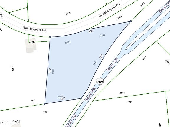 PROPERTY UNDER CONTRACT SHOWING FOR BACK UP ONLY. NO INTERIOR ENTRY this is exterior view only. Commercial zoned lot on 1.37 acres with 375ft of business route 209 road frontage. This lot is mostly cleared with a well and septic and two sheds. Manufactured home is included in sale.