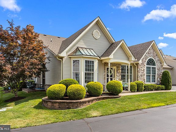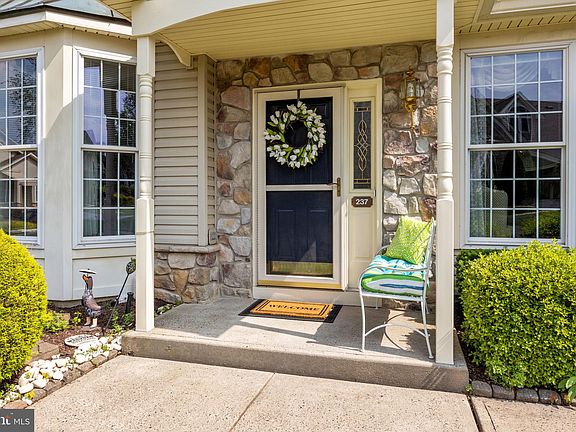 Welcome home to 237 Sugarberry Lane, a Thornhill Model Quad in the desirable 55+ community of Flowers Mill. Enter this home through the covered porch and immediately be drawn to the modern engineered hardwood floors that spread throughout the living areas on the main level. The combination living room / dining room set up is quite spacious and features vaulted ceilings making for a welcoming first impression. On one side of the living room you will find the main bedroom with vaulted ceilings, en-suite, walk-in closet and additional double closet, a true owner's retreat. On the other side of the living room is the second bedroom and additional full bath. Now follow the hardwoods beyond the dining room to find an impressively sized combination kitchen and family room. This house is perfect for entertaining all size families! The beautiful kitchen with 42" cabinetry, granite countertops, tile backsplash and stainless steal appliances overlooks the family room with attractive gas fireplace and vaulted ceilings. Off of the family room you will find access to an expanded, partially covered patio. The first floor is finished out with the laundry room which leads to the 2-car garage with additional storage closet as well as access to the finished 2nd floor loft with large storage room. This house has all the room you need to make it your home. Of Note: Roof (2022), Water Heater (2023). Enjoy all the activities that Flowers Mill has to offer including a recently updated clubhouse, indoor pool, outdoor pool, tennis courts, bocce, NEW pickle ball courts, walking trails and a calendar full of events.