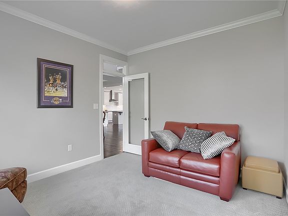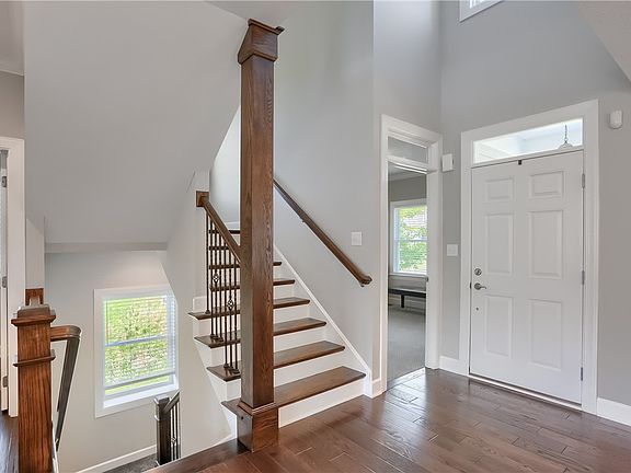 Privately nestled, custom stunner with fresh landscaping and a secluded setting will impress. Open layout with sprawling hardwood, crown molding, neutral tones, large windows and modern amenities will delight any buyer. French door with transom creates a private den. Elegant dining room has a trey ceiling, chair rail and is open to the gourmet kitchen with JennAir appliances, endless granite counters, abundant two-toned cabinetry, pendant lighting, huge pantry and subway tile backsplash are highlights. Eat-in kitchen overlooks the serene rear yard with access to the composite deck. Entertain in the expansive family room with a stone fireplace and wall of windows flooding the main level. Powder room and laundry complete. Ascend to the primary suite fit for royalty with spa-like bathroom and walk-in closet. Guest bedrooms have ample storage, and share a modern hall bathroom. Expansive lower level has a full bathroom, wet bar plumbing and walk-out to the patio, yard and pond access.