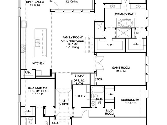 Perry Homes New Construction! Extended entry leads to open family room, kitchen and dining area. Family room features wall of windows. Kitchen hosts island with built-in seating space. Game room with French doors just off family room. Secluded primary suite. Dual vanities, garden tub, separate glass-enclosed shower and two large walk-in closets in primary bath. A Hollywood bath, high ceilings, large windows and abundant closet space add to this one-story design. Extended covered backyard patio. Mud room off three-car garage.