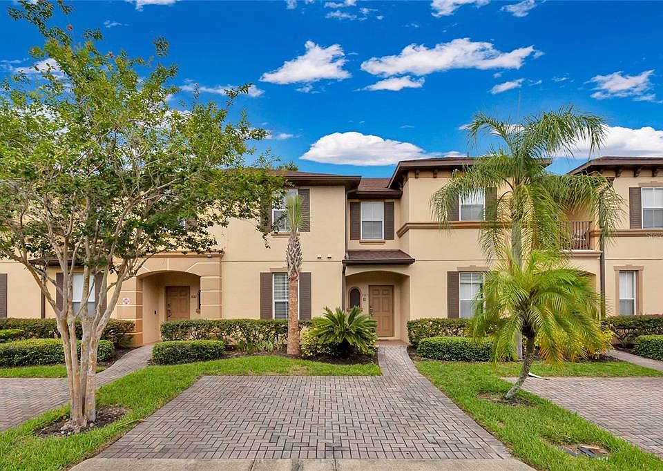 *Walkthrough video available** This townhome is in a prime location in the Regal Palms community as it’s just one street away from the resort-style amenities which include a community pool, lazy river, water slide, hot tub and tiki bar. There is also a fitness center which offers a steam room and sauna as well as the volleyball court and playground. The gate is staffed with a guard 24-hours a day. Additional amenities include a restaurant, spa, nail salon, arcade and gift shop. This townhome is being sold fully furnished and has 2 suites with one being downstairs and having a separate entrance as well as access to the main home. The downstairs suite has a queen bed with a walk-in closet. The primary suite is on the 2nd floor with a walk-in closet, garden tub/shower, ceiling fan and king bed. The secondary bedrooms are upstairs and each has a twin bed plus a bunk bed so they can easily sleep six guests between them. All of the upstairs bedrooms have vinyl plank flooring. You’ll find stainless steel appliances in the kitchen that is stocked with dishes and cooking utensils. There’s a ceiling fan in the living room. The dining room is open to the living room and kitchen so everyone can spend time together. The sliding glass doors lead to a covered patio and greenspace. Additional upgrades include a stacked washer and dryer downstairs and a new hot water heater (2023). Regal Palms HOA dues include 24-hour guard at the gate, cable TV, internet, lawn care, access to the pool, fitness center, playground and volleyball court, trash, and exterior/interior pest control.