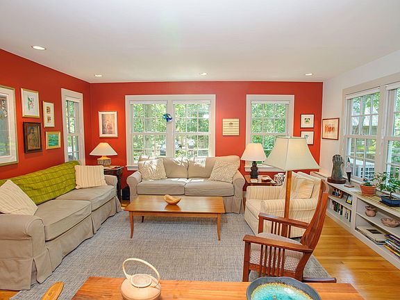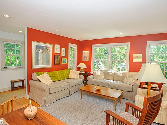 Comfortable Vineyard living, coupled with a feeling of warmth and home, greets one upon entering. 237 Vineyard Meadow Farms Road is a charming and lovingly maintained home, nestled in a quiet setting on 1.5 acres, with numerous unique features. The sunken living room and open kitchen and dining area are ideal for entertaining, as well as busy family life, offering several entertainment areas, including the added enjoyment of the three-season room. One can also enjoy privacy, feeling a part of nature with the surrounding wooded areas and a fabulous deck and distinctive stone wall. With four bedrooms, three full baths, including a primary suite with a dedicated office, the home captures the charm and ambiance of Island living. The location is ideal with easy access to Long Point Beach, the bike path, and proximity to West Tisbury center. For those who want a change of beach scenery, there is access to Lamberts Cove Beach - the best of the best!