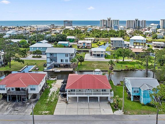 Welcome to your dream retreat on the water! This beautifully updated 3-bedroom, 2-bath raised beach house is ideally situated on a peaceful canal with direct access to Little Lagoon—and just a short walk to the sugar-white sands of Gulf Shores. Whether you're an avid boater, fisherman, or simply seeking peaceful waterfront living, this home has it all. Enjoy the rare advantage of a grandfathered-in oversized back balcony, complete with low-maintenance Trex decking and sleek cable railing, offering unobstructed views of the canal—an outdoor living space that simply can’t be replicated today. A wood deck on the ground level offers even more space for relaxing and entertaining, and is even complete with a cargo elevator for added convenience. The PRIVATE boat launch, 1,000 lb. boat lift, and dedicated RV/boat parking make this a true water lover’s paradise, along with ample outdoor storage space for kayaks, paddleboards, and beach gear. Inside, the upgraded kitchen features a top-of-the-line Bosch induction cooktop, LG French door refrigerator with ice maker, quartz countertops, a granite island, and an elegant marble backsplash—perfect for hosting or enjoying a quiet night in. Throughout the home, wood-look tile flooring adds warmth and style while providing easy maintenance for everyday living. The primary suite includes an updated bathroom, while the south-facing windows have been replaced with hurricane-grade double-pane glass for peace of mind and efficiency. Located in the heart of Gulf Shores, you’re close to everything this vibrant coastal community has to offer—local restaurants, live music, boutique shopping, Gulf State Park trails, and world-class fishing. Whether you're entertaining on the deck, launching your boat for a day on the water, or walking to the beach, this home is your gateway to the ultimate Gulf Coast lifestyle. Don't miss this rare opportunity to own a move-in-ready waterfront home in one of Alabama’s most beloved coastal towns.