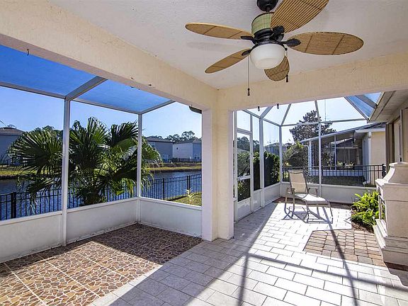 You'll love the panoramic views of the duck pond from your 40 foot wide enclosed lanai. Or cuddle up under the stars in front of the electric outdoor fireplace. This 3 bedroom, 2 bath block and stucco home will give you peace of mind with built in accordion storm shutters, a whole house water filter system and a 2 car attached garage. Situated in a friendly community with a playground, underground utilities and an exemplary school system, just 30 minutes from the Jacksonville metropolitan area. This home is wired for security and also features a well for irrigation, fully fenced backyard and lots of outdoor outlets for lighting and other conveniences. St Johns County schools are rated among the highest in the state of Florida. The Ravenswood Forest community has a very low annual HOA assessment of $320. There was no flooding in Ravenswood Forest from the past hurricanes. This neighborhood is situated conveniently to historic downtown St Augustine, the beaches, Flagler College, outlet malls, restaurants and interstate corridors. A pair of bald eagles nest in the conservation area each year and usually have one or two baby eagles. This is a sound block home that is very affordable at this price point. A must see!
