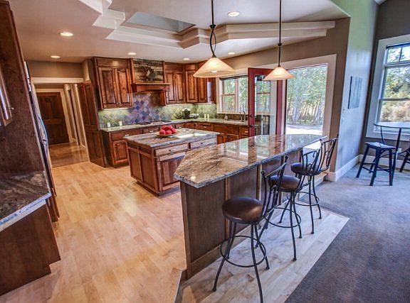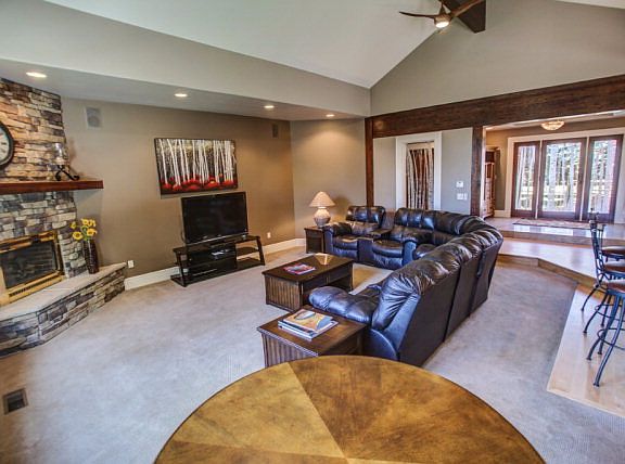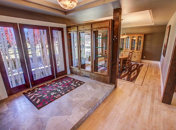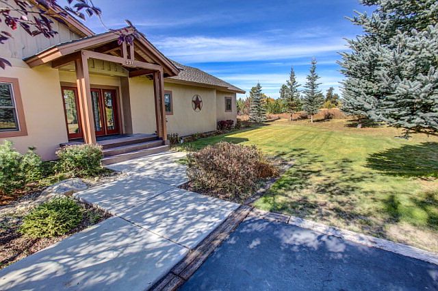 This lovely, private home has elegant finishes and is located off the golf course in a lush aspen grove. Etched glass in entry doors and the master shower. This single level 3BR 2.5 Bath home has split BR and great room configuration. A separate formal dining room has a view to Jug Mountain. Propane fireplace in living room and master. Three car garage has plenty of storage. The backyard has formal landscaping, a Trex deck (with roll out awning), deck furniture, iron fire pit and huge aspen grove to offer a private park-like setting. Dog run along back of the garage has dog door to garage. The backyard backs up to a common area then the fairway of the 9th hole. The sellers are offering a turn key furniture and accessory package with a few exceptions. Ride on lawn mower included.