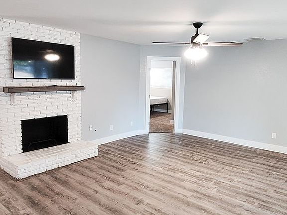 Perfectly set on a tree-shaded lot, this Ridgecrest beauty feels like home the minute you pull up! Situated in a quiet, family-friendly neighborhood. You'll find tasteful updates throughout this recently renovated home. From the custom concrete kitchen countertops, to the open patio and grass backyard, there is plenty of room for everyone to enjoy. The large, open kitchen features an island, shaker cabinets, white subway tile backsplash, and a deep, oversized kitchen sink. Fully updated master and guest bathrooms featuring white subway tile shower, and shiplap wall. The spacious indoor laundry room features a stylish barn door leading to a large pantry. Newly updated ceiling fans and light fixtures in every room. The large master bedroom includes walk-in closet and backyard access through a glass door. Recent updates include new luxury vinyl flooring throughout, stainless steel appliances, and fresh paint in every room. All appliance and three wall mounted TVs are staying with the house! TVs are in the family room, Master bedroom, and garage. Priced to sell so come see this house today!