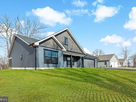 Step into modern luxury with this stunning home by Panhandle Homes of Berkeley County. Tucked away on Wampum Lane in The Woods Resort, this home offers access to the endless amenities of The Woods community while being in its own little section of the neighborhood near hole 8 on Mountain View Golf Course. Step inside to discover the timeless aesthetic of this craftsman-style home brought together with Weathered American Pine LVP flooring. Elegant quartz with gold veining adorns the 7’ x 5’ kitchen island and navy cabinets featuring soft close hinges and dovetail construction line the kitchen. The kitchen puts on display a white porcelain farmhouse sink with a Moen high arc faucet in a brushed gold finish, adding a modern flair. In the heart of the home is a linear fireplace set against a striking black shiplap wall and cathedral ceilings with beautiful black beams. This gorgeous living area offers dual sliding doors with built-in black accent blinds which will take you into the 18’ by 8’ screened-in patio, extending your living space. The owner’s suite features a spa-like bathroom with an oversized tile shower and Shaw carpeting with a cloud-like 8lb carpet pad. Brushed gold accents throughout and rich navy cabinets make this home one of a kind! Embrace the serenity of nature without compromising on modern amenities in this thoughtfully designed new home - schedule your appointment to tour this home today! *Full Membership to The Woods Resort is available to initiate, The Woods Resort includes facilities such as Outdoor Pools, a Heated Indoor Pool, tennis courts, pickleball courts, racquetball, gym, sauna as well as multiple golf courses.