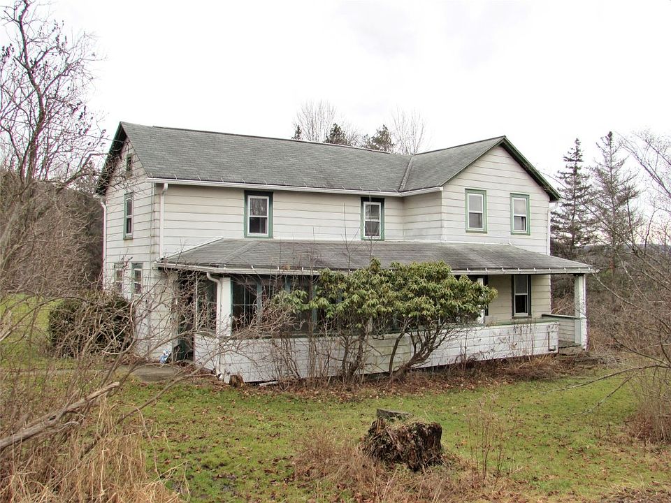 FARM HOUSE STYLE HOME ON 7.8 ACRES, with blank-slate starting point, ready for your renovation, salvageable hardwood floors in living room and dining room, brand new electric service installed in 2022, new service to the barn as well. Timber frame barn with tons of potential, acreage for hunting or walking, on a rural location, with great views, but not far from town. Seller is willing to do some additional demolition or vegetation removal. BRING YOUR IDEAS!