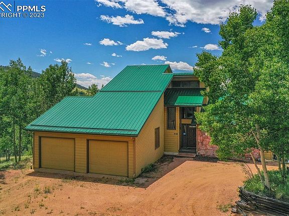 Experience the pinnacle of mountain living in this exceptional stone-sided & wood-framed mountain residence. Whether you seek a permanent abode, a lucrative investment opportunity, or a coveted VRBO, this home combines the rustic charm of the mountains with modern comforts and the breathtaking landscapes of the Cripple Creek area. The property features wooden windows and wood-framed glass patio doors that flood the interior with natural light. Step inside to the warmth of wide plank solid wood flooring in the kitchen and dining area. Enjoy the ambiance of tongue and grove ceilings and a true wood burning fireplace in the living room. The main level offers a primary bedroom complete with an attached bath on one side and a sunroom on the other, providing a private sanctuary. Primary bath has tile flooring, Jacuzzi tub, double sinks, and a walk-in closet. A chef’s delight awaits in the kitchen, with a Samsung stainless steel refrigerator, GE dishwasher, Kenmore trash compactor, and a pristine white self-cleaning glass-top oven. Enjoy a quick meal in the breakfast nook or have a memorable evening in the dining room, complimented by a gas stove w/ sophisticated brass and glass accents. Wood-framed glass patio doors provide a seamless transition between indoor and outdoor areas, guiding you to wooden decks and easy access to the natural environment. Upstairs, discover two generously sized carpeted guest bedrooms and a full bath. The walkout basement houses a state-of-the-art hot water and radiant baseboard heat furnace. Berber carpeting defines the basement zone, great for media and gaming, while the adjoining space, with a walk-out, can transform into a playroom. A 16x16 shed w/ ele., 2-car attached garage & circular driveway add extra conveniences. This home is the perfect blend of rustic aesthetics and contemporary style, seamlessly blending natural vistas with well curated living spaces. An extraordinary opportunity awaits. Embrace the best of mountain living.