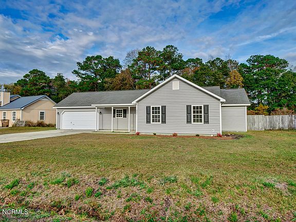 Wow!!! This beautifully renovated 3 bed, 2 bath home with all new vinyl siding is conveniently located to local businesses, schools, and shopping! It features a modern open floor plan with a vaulted ceiling in the living room, cozy wood-burning fireplace, brand new kitchen cabinetry and countertops with sleek new stainless appliances, as well as stylish new laminate flooring, plush new carpet, new lighting and plumbing fixtures, fresh paint and much more! The master suite features a walk-in closet and a master bath with a new premium height vanity and a roomy new countertop! On the outside, besides the all new vinyl siding, there's a two car garage as well as a back patio that looks out to a large fenced-in backyard! This one is move-in ready and priced to sell! Set up your own private showing today!