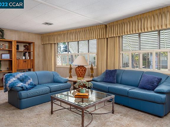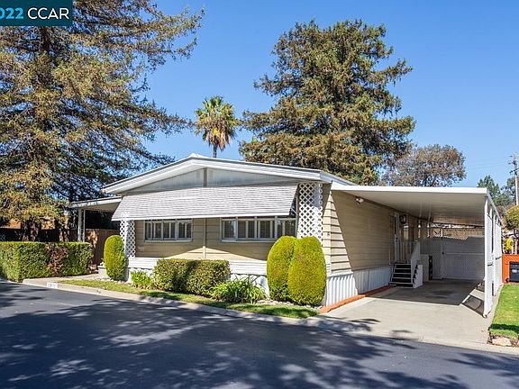 This spacious Mobile Home is located in desirable Dalis Gardens Senior Mobile Home Park. Open concept, granite countertops. Skylights. On-suite bedroom. Dining area with Built-in China Cabinet, wood-burning chimney and more! Laundry room with washer and dryer included. Glass slider to access a bonus room. Large yard with a Japanese garden. Patio furniture and a fire pit can stay! Yard has automatic sprinklers. Fully landscaped including detached storage Sheds. Carport with parking for 2+cars. Park amenities include clubhouse, game room with pool tables, swimming pool, SPA and sauna. Greenbelt with walking paths throughout bordering a large pond. Plenty of guest parking spaces. Residents must be 55+ and income must be at least 3Xs space rent.