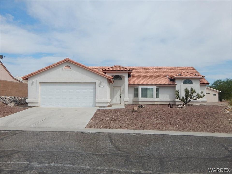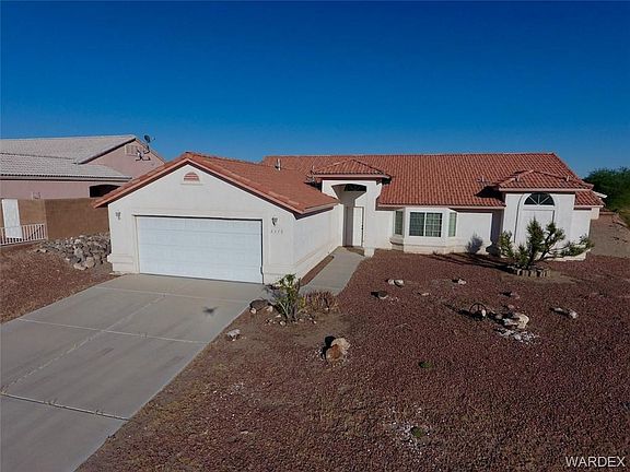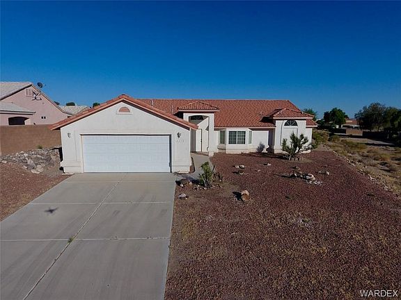 NO HOA FEES! This lovely 3 bedroom, 2 bath home sits on a pool sized lot in the Sun Valley community. Featuring a split floor plan that is bright and open with vaulted ceilings, bay windows and casual dining. The master suite offers access to the back patio, his and hers closets, walk-in shower and dual vanity in the master bath. Relax and enjoy the beautiful sunset views from the covered patio. Additional features include a large pantry in the kitchen, boat deep garage, ceiling fans, window coverings throughout, desert landscaping in the front yard. Close to shopping, restaurants, community services and river access.