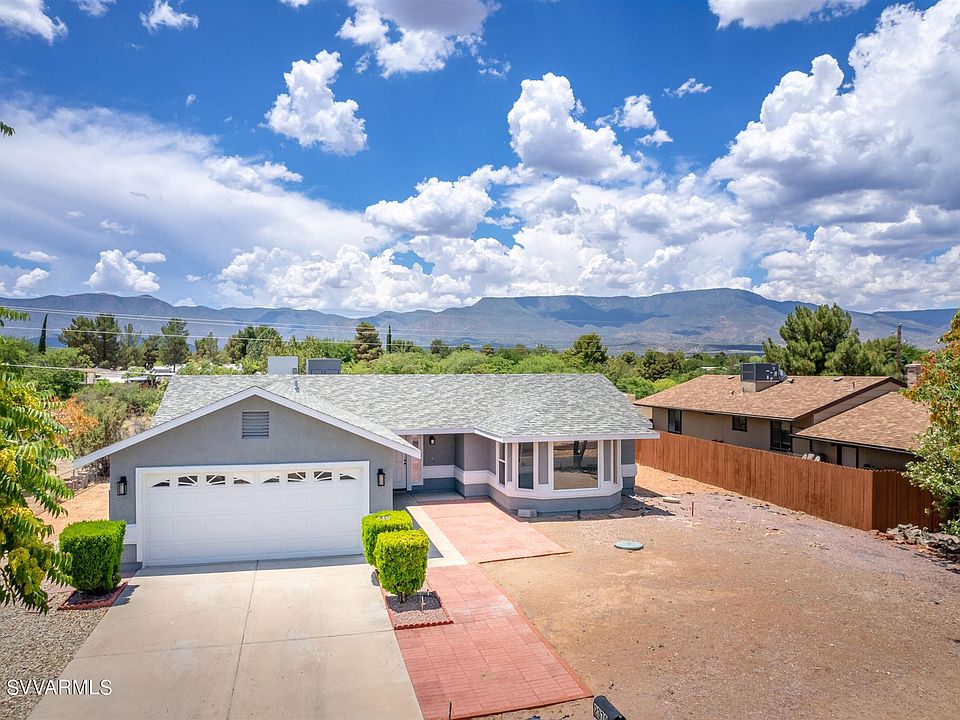 Charming 3 bedroom 2 bath split floorplan home with a quiet cul de sac location and distant views of Sedona's majestic red rocks. Newly painted interior and exterior, brand new HVAC system, septic has been pumped and fenced backyard. 400 sq ft garage offers plenty of parking and workspace. No HOA. This one checks all of the boxes on that wishlist, come find your Happily Ever After at 2370 S. Puma Circle