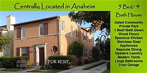 *7 miles to UCI Medical Center*8 miles to CHOC and St. Joseph*Near Top Private School - Fairmont Private Schools*In Oxford Academy School Boundary*Near Cal State Fullerton & Chapman University *Walk to bank & shops*near Disneyland 5 bedroom, 4 bath home located in private gated communtiy with a private park. Features 2 car garage, upstairs laundry hook-up. 1 bedroom and 1 full bath is downstairs. Beautiful kitchen, spacious dining room. Has an outside courtyard and back yard that is beautifully paved and low maintenance. For more properties like this visit GoSection8.com.