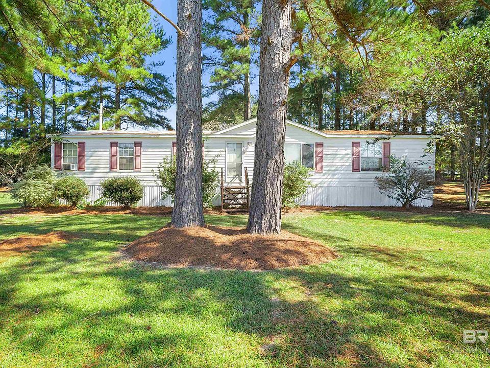 VALUE RANGE PRICING, SELLER WILL CONSIDER OFFERS BETWEEN $135,000 AND $160,000. This 3/2 mobile home is situated on a gorgeous lot that is over an acre in a beautiful, rural area of Baldwin County. You will have plenty of room to breathe at this serene location that is also convenient to both Florida and Alabama beaches. The Beach Express and I-10 are just about 6 miles away. This home has a lot of potential, but does need some repairs. With an acceptable offer funds could be escrowed to make updates post closing. Buyer to verify all information during due diligence.
