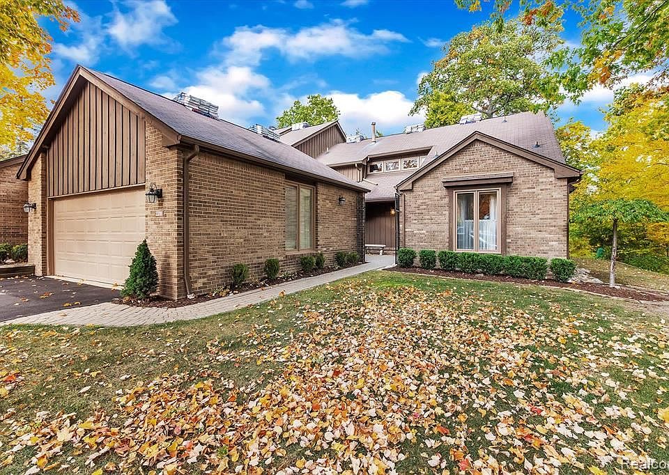 Beautiful, bright, Bingham Woods condo overlooking the ravine! Enter through the gated brick paver courtyard. First floor features formal dining room, spacious family room with gas fireplace, kitchen with cozy breakfast nook, den with built-ins, and laundry. First floor primary has H&H walk-in closets and primary bath. Upper level complete with two sizeable bedrooms & full bath. Sprawling lower level with egress window is great for storage or can easily finished for extra living space. Private back is perfect for entertaining and the view is picturesque overlooking the ravine. Two car attached garage. Roof in the process of being replaced by the association.