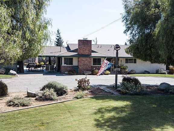 Lovely ranch style home on close to 8 acres with open floor plan and beautiful views. 3 large bedrooms with large closets, two baths, master bedroom has glass door access to pool area. Large inside laundry room fireplace, wine rack and much more' outside there is a 1800SF (30 x 60) metal shop surrounded by 7 acres of producing oranges, there are 2 water sources and 2 electrical meter sources, an Ag well commercial metered with 380 AMP by SCE which pumps 50-60 gallons per minute, also LSID Ag & domestic water meters between the garage, and 1 electrical meter service to the house. Home has a gated breezeway with enclosed pool bar for entertaining guest.. Sparkling concrete in-ground pool with diving board. The landscaping, flower garden, lush grass area are on a timer for watering. The 7 acres of orange orchard produce over $20k income yearly and may cover the mortgage. Don't miss the opportunity to own a ranch!