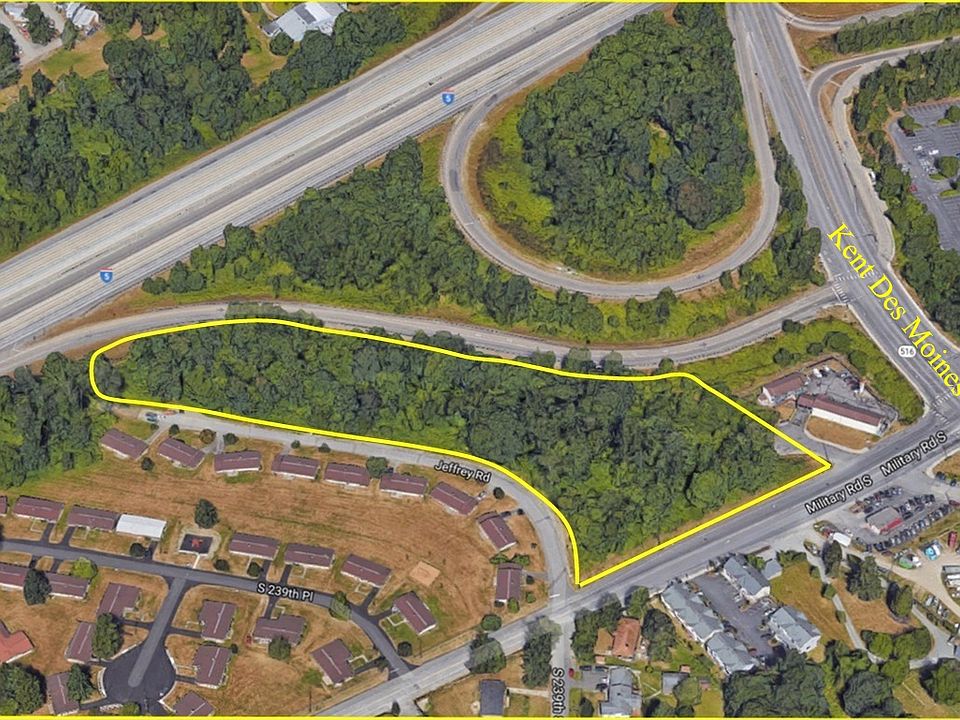 The Military Road development site is located in the Midway area of Kent, just east of Interstate 5, and consists of a single lot of 4.48 acres or 195,263 square feet. The property is zoned CC (Community Commercial) which allows a wide range of commercial uses including office, retail, restaurants, auto, day care, veterinary, nurseries and farm. A conditional use permit is required for self-storage, churches and assisted living. Hotels, motels and residential are not permitted. The property fronts on Military Road South and has good Interstate 5 visibility and access.