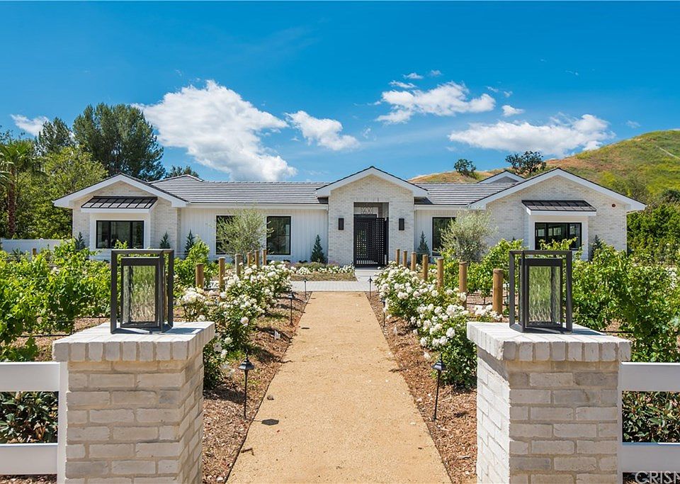 Brand new, just completed, beautiful custom one-story estate sited on a lushly landscaped, flat acre lot. Featuring an open floor plan that's flooded with natural light, and designed around a gorgeous, open air interior courtyard with fireplace, highlights include a stunning chef's kitchen with dual center islands and serving bar, opening to the spectacular great room with slab stone fireplace, entertainer's wet bar, invisible built-in surround sound speaker system, and sliding walls of glass. Additional features include 5 en suite bedrooms including the luxurious master suite with all stone bath, plus spacious formal dining with built-in china cabinets & adjoining, glass encased wine cellar, custom office, large bonus room with surround sound speakers, and pool house with bath & outdoor cabana/living area. Additional amenities include a Lutron lighting system, covered patio with full barbecue center, big sparkling zero edge pool and spa, expansive lawns, family vineyard with both wine & table grapes, numerous fruit & shade trees and garages for 6 cars.