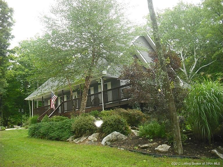 Beautiful home with over 3200 fin sq ft of living space located in Starlight area on 7+/- wooded acres with nature trails, wildlife abundance. Open floor plan w/hardwood floors, hickory cabinets & balcony overlooking kitchen & sitting room. 2 master suites with walk-in closets & shelving. Possible 5th BR/Office, stainless steel appliances, 2 lg family/media rooms (1 with surround sound). Additional wood furnace located in garage. Low heat bills. Koi pond/waterfall. Secluded.\n\nInformation Deemed Reliable But Not Guaranteed. Information provided by the Southern Indiana REALTORS® Association, Inc. © 2010 SIRA Multiple Listing Service. All rights reserved. Brokered And Advertised By: RE/MAX Advantage Listing Agent: Paula Kiger-Hess