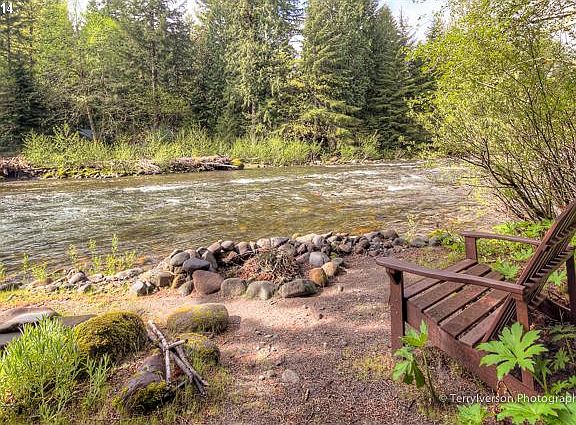 Private chalet on the Sandy River among tall firs & cedars. Great room with a wall of windows that overlook the river & bring the outside in. Remodeled, down to studs by Eldredge Const. in 1992, plus upstairs addition & balcony. Kitchen w/tile counters, cook island, marble pastry work station, wine rack & cabinet pull-outs. Master w/skylight & large built-in dresser adjacent bath w/jet tub & walk-in shower. See SPECIAL FEATURES list