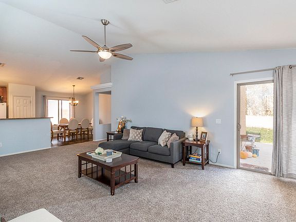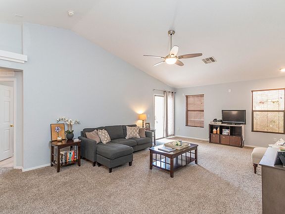 Fabulous 4 Beds + 2 Baths home on a corner lot! Spacious 1,569 sqft great room floor plan with vaulted ceilings and neutral interior details. The kitchen features an abundance of staggered maple cabinetry, white appliances including an electric range/oven, granite counters, RO system, pantry, and naturally lit dining area. The carpeted master retreat includes tall ceilings and an attached bath with dual sink vanity, tub/shower combo and roomy walk-in closet. Carpet and ceiling fans in all secondary bedrooms! The backyard has plenty of space for kids or pets to play, no direct rear neighbors, and concrete patio for outdoor relaxing or dining. Other features: 2 car garage, inside laundry, newer paint & landscaping, leased solar panels providing tremendous utility savings, community parks and so much more! Above ground spa does not convey but is negotiable. Schedule your showing today!