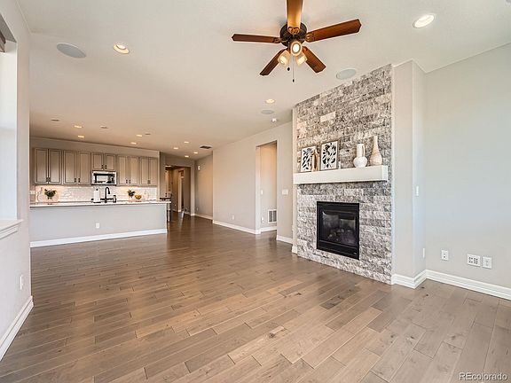 Impeccable Ranch Style, Corner Lot home in the Desirable Inspiration Neighborhood. 4 bedrooms, 4 baths, Plus Den and 3914 sq ft on 2 levels make this a versatile floor plan for all types of homeowners! Great Room w/ Gourmet Kitchen featuring Quartz Counters, Large Entertainer's Island, Soft Close 42" cabinets, Kitchen Aid upgraded appliances including French Door Refrigerator, Double Oven & 5 Burner Gas Stove top, Easy clean wood-look laminate flooring. Spacious Dining and eating areas open to the Living Room w/ tons of natural light and cozy gas fireplace. 2 Large pantries off the Kitchen, Mudroom w/ large coat closet, Laundry Room w/ Utility sink, Washer & Dryer included. 3 car garage. Primary Suite w/ 5 piece bath, double sinks, walk in closet & tile floors. 2 bedrooms and a full bath round out the main floor. Covered Deck off the dining area over looks the green belt open space and ground floor patio and fenced Xeriscaped yard . Finished basement has Multi use Family/Game/TV room with Wet bar w/ full sized refrigerator,w/ bonus Pantry/ Closet . This could easily be another kitchen. Lower level bedroom has an ensuite 3/4 bath and an attached private den. Perfect for Guest quarters or live in family member. There is also an additional 3/4 bath , and several storage areas. Beautiful community pool, playground and Park. This move in ready home is a must see! If the buyer uses the preferred lender, they can take advantage of a 1% of the loan, credit towards their closing costs. Call lender for details. Floor plans delayed but coming soon!