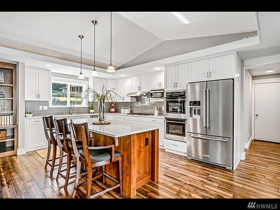 Tastefully remodeled 3275 sq ft, 5bd/3.5ba on 1/2 acre! Kitchen features quartz counters, ss appliances, dbl oven & vaulted ceilings opening to family rm w/gas fireplace & built-ins. Master bdrm opens to private deck & has 3/4ba w/granite counters & walk-in closet. 2 more bdrms, full bath, powder rm, den/office, dining rm, bkfst nook & elegant hickory wood floors on main. Lower level offers rec rm, 2 bdrms, full bath & storage. RV parking, a/c, garden space, mins to 405/527 & Northshore schools.