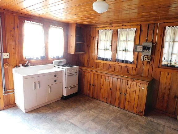 HALF LOG CABIN WITH WATER ACCESS- Luzerne area, featuring stone fireplace, lots of windows, knotty pine, water access to the Big Creek, sun porch and bathroom. Affordable price, and a great view overlooking the Creek. A-2656