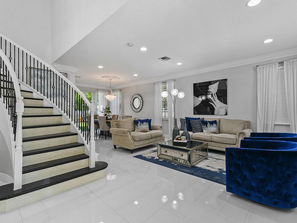 STUNNING 5 Bedrooms VIZCAYA model perfectly blends great location, comfort, elegance, and modern upgrades; located on an OVERSIZED Corner lot in the desirable OLYMPIA community. This AMAZING home is move-in ready. Olympia is a prestigious, gated community located in the heart of Wellington, known for its RESORT-STYLE living, lush landscaping, and Mediterranean-inspired architecture. New interior & exterior paint, Upgraded bathrooms & kitchen (w/island granite counter-top), w/new stainless-steel appliances, New tiles on 1st floor, New Front Door, New wrought-iron spiral staircase, Fans inside & out, Fenced patio, open balcony, 1st Floor 2019 AC, & so much more! Manned guard gates with 24/7 security, Scenic lakes, walking trails, & well-maintained green spaces, & Family-Friendly atmosphere. Olympia Amenities: Grand Clubhouse ("Villa Olympia"), Resort-style swimming pool with cabanas, Fitness center with cardio and weight equipment, Indoor and outdoor basketball courts, Tennis and volleyball courts, Children's playgrounds & splash zone, Community rooms for events and meetings & On-site property management. City: Wellington is an upscale, family-oriented village located in Palm Beach County, just west of West Palm Beach. Known as the "Winter Equestrian Capital of the World," it combines suburban charm with a high quality of life. Why People Love Wellington: Top-rated public and private schools, Equestrian culture - home to the Palm Beach International Equestrian Center, Parks and Recreation - over 30 parks, sports complexes, and nature preserves, Shopping & Dining - Wellington Green Mall, restaurants, and boutiques, Safe and well-kept neighborhoods, Close to major highways (Florida Turnpike & I-95) and 20-25 minutes from the beach. Wellington hosts annual events like the Winter Equestrian Festival, Wellington Wine & Food Festival, and holiday parades. ***The Lamps under the Steps & in the Formal Dining Room DO-NOT Convey.