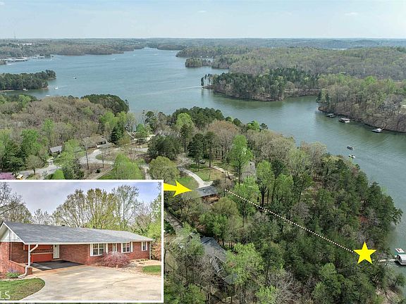 Lake Lanier, 3 BR/2.5 BA cozy, lakefront with S/S covered boathouse, swim platform, 2 jet ski ports, amazing lake views and deep water! Located in a quiet cul-de-sac with new construction homes, this well-maintained home with original hardwood floors, features a remodeled kitchen (2010) with Corian counters, sliding doors (replaced 2017) to the deck (stained 2019), and lots of storage. The family room, dining room, master and 2 additional bedrooms - one used as an office, desk furniture remains - with one full bath and a connecting half bath (closet could possibly be converted to shower) make for easy, one level living. The fully finished basement features a large family or game room, large storage closet, full bath, and 2 additional rooms with closets that can serve as bedrooms. The grassed backyard with gorgeous perennials features a gentle slope to the cleared path to walk or take the golf cart to your private dock with power and rip rap. All this with full yard, invisible dog fence (collars), Rainbird irrigation, storage shed for fishing and lake toys, and a hot tub. Refrigerator included with sale of home. Water heater replaced in 2015; roof less than 10 yrs old.