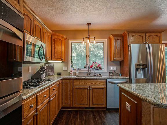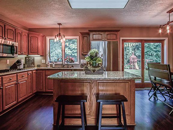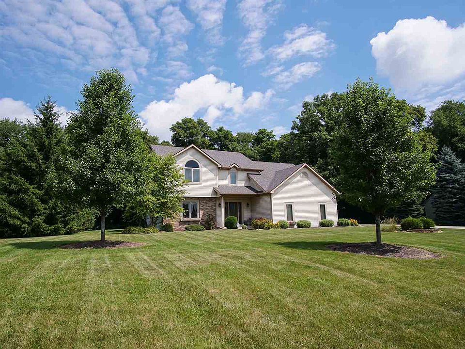 Gorgeous and spacious 4 bedroom home on wooded lot in a secluded country neighborhood. Beautiful homes, large lots, you will love this area...and the home is amazing! Large bedrooms, gorgeous updated kitchen with granite and stainless steel appliances. This gourmet kitchen includes a double oven and a wine cooler and a gas range. You will not lack for space in this home, two living spaces on the main floor, including a cozy family room with a fireplace, eat-in kitchen plus spacious dining room. The basement boasts polished concrete floors and a second fireplace. Upstairs you will find the impressive master bedroom with a beamed vaulted ceiling and his and hers closets!! Don't miss your opportunity to make this gorgeous house your home!