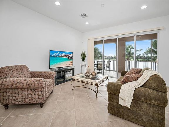 From the moment you drive into your two-car attached garage, you will feel right at home in this second-floor carriage home with private elevator. Larger than most single-family residences, with an open floor plan and plenty of room to entertain guests and family members. Enjoy a cup of coffee or an evening refreshing beverage on your spacious lanai overlooking the sparkling lake. Listen to the sounds of the rustling palm trees in the soft wind while admiring the beauty of a sunset. A private beach island awaits you as you enjoy carefree living with golf, tennis and pickleball, and fitness just outside your front door! The Colony Golf & Bay Club community offers a wide range of amenities, including exclusive access to dining at The Bay Club. Close to area dining and entertainment at Coconut Point Mall and a short 20-minute drive from the airport.