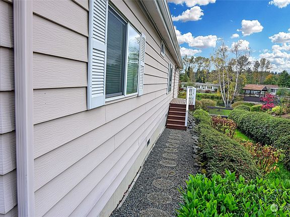 Enjoy serene lakefront views from the comfort of your living room and private deck in this well-maintained manufactured home, located in a desirable 55+ community. A creek runs to one side. The property features a large garage and separate workshop, perfect for projects or additional storage. Recent updates include a new roof in 2018 and newer plumbing, giving peace of mind for years to come. The spacious primary suite includes a tub, offering an opportunity to customize your ideal bathroom retreat. The original kitchen opens up to the living room, allowing for uninterrupted views of the lake, while the oversized dining room is perfect for gatherings. Clubhouse, trails, clubs and activities. Don’t miss this opportunity for lakeside living!