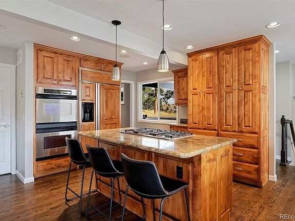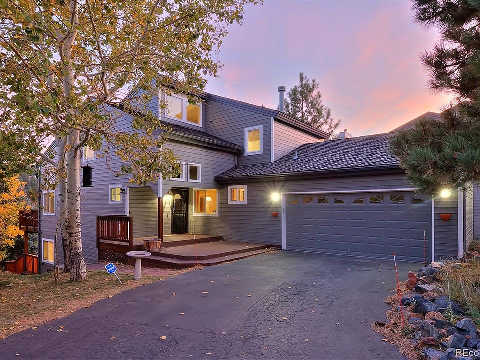 The mountains are calling...but so is the city! What to do? Live the mountain resort experience, yet give up nothing in convenience in this exceptional home just 20 minutes from downtown Denver in The Village at Genesee. You'll be set for home entertaining with a gourmet kitchen that features cherry cabinets, granite counters, and a bar area complete with a drink fridge and warming drawer. Beautiful hardwoods run throughout the open, sunny main level, highlighted by a floor-to-ceiling stone fireplace. The entire home is wired for sound, including the show-stopping wraparound back deck, with a hot tub and breathtaking views. Or gather on the lower-level around the gas fire pit to watch for wandering deer (after plucking a bottle from your downstairs wine cellar). The entire upper floor is your primary suite, with a private deck, fully updated luxury bath with steam shower and jetted tub. You'll never be bored with a community pool, pond, fitness center, and tennis courts right on site.