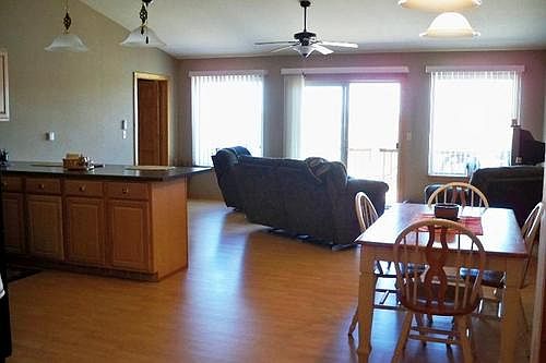 Priceless Views from this Great Open Living Space, Split bedroom plan, with LARGE Master with walkin closet and lake view. Great home for entertaining & enjoying the panaromic view! Unique Walk out basement with rustic rough pine & corrugated metal finish that includes exposed rock! Deck off upper level & patio off walkout basement.Home is located golf cart ride from the Landing Strip for the avid pilot! Attached garage & carport and a third party boat slip available in Green Shores Subdivision south of bridge(15 minutes by car)