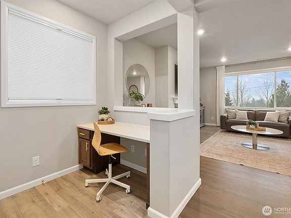 Covered patio welcomes you to this spectacular 9’ ceiling SMART home w/thoughtful upgrades! Grand entry & open layout are filled w/natural light & showcase Territorial & Olympic Mountain Views. Chef’s kitchen features an eating island for 6, 5-burner gas cooktop, double ovens, soft-close cabinetry, upgraded hardware & pantry space w/slide-out drawers. Laminate flooring flows through open living & dining, anchored by a gas fireplace. Pass by ½ bath as you head upstairs offering 3 spacious beds, including two w/Jack & Jill bath & walk-in closets + a generous Owner’s Suite w/a 5-piece ensuite & upstairs laundry. Finished Basement includes a large bonus rm, ¾ bath & optional 5th bed. Deck, large patio w/covered seating, A/C & Northshore Schools